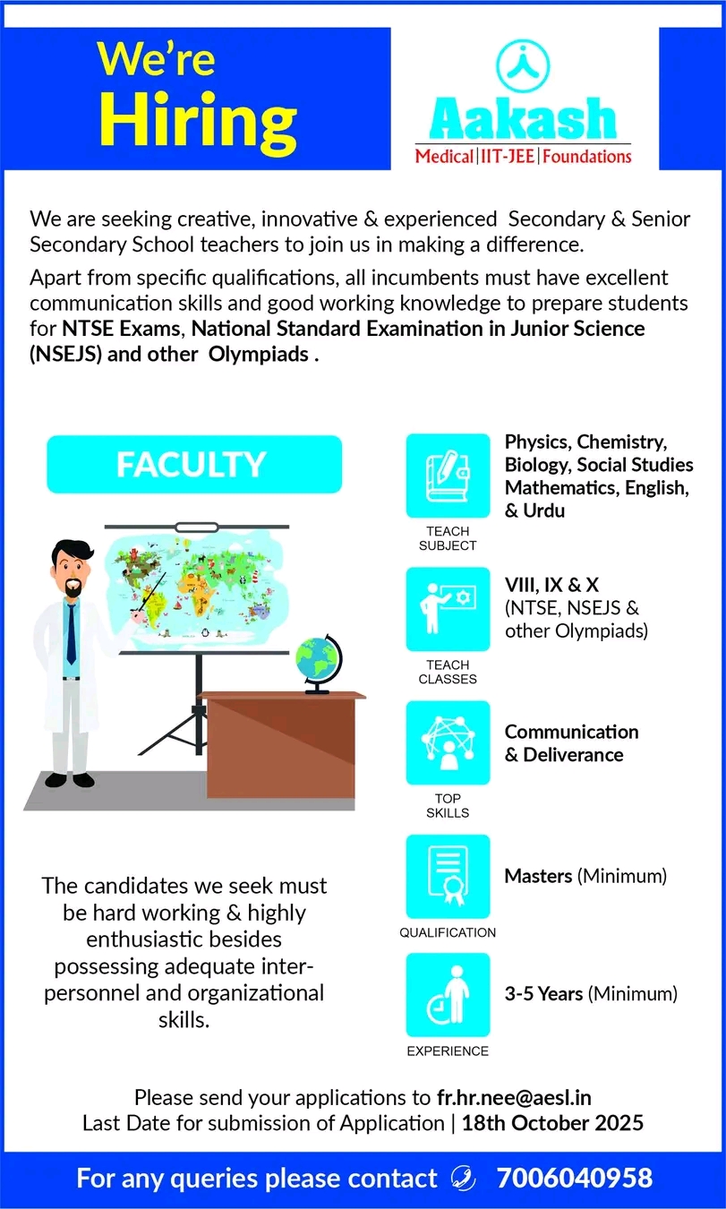 AakashInstitute #FacultyHiring #TeachingJobs #NEET #JEE #JoinAakash